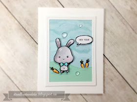 This first card uses stamps from Love Cynthia and dies from Lawn Fawn.  I used the Somebunny Loves You stamp set which, by the looks of it, is discontinued.  Sorry about that.  As I'm going through and using these stamps, I'm realizing just how long they've been sitting!!